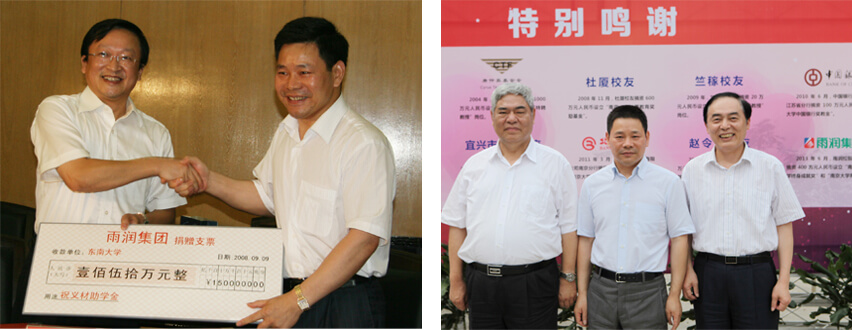 同樣,雨潤在東南大學設立的“祝義財助學金”,也已經完成首期五年的捐贈計劃:五年內共捐資150萬元,幫助500名學子順利完成學業。雨潤還在安徽大學等其他很多知名高校同樣設立了“祝義財助學金”。